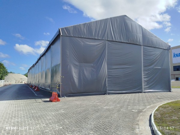 Galpão com coberturaAs principais vantagens do galpão lonado: ✅ 1. montagem rápida instalação em poucos dias, ideal para demandas urgentes ou temporárias. ✅ 2. custo reduzido mais barato que construções convencionais em alvenaria ou metálicas. ✅ 3. estrutura modular e flexível pode ser ampliado, reduzido, desmontado e transportado com facilidade. ✅ 4. versatilidade de uso atende diversos setores: indústria, logística, agronegócio, construção, eventos, entre outros. ✅ 5. isenção ou redução de burocracia em muitos casos, dispensa alvará de construção por ser estrutura temporária. ✅ 6. proteção contra intempéries resistente à chuva, sol e vento (quando montado corretamente). ✅ 7. opções personalizadas pode incluir iluminação, fechamento lateral, climatização, piso, portas, etc. ✅ 8. mobilidade pode ser desmontado e remontado em outro local. 1. estrutura metálica material: aço galvanizado ou aço carbono com pintura anticorrosiva. formato: arcos ou treliças (dependendo do vão livre). fixação: chumbadores ou base metálica com ancoragem ao solo/piso. ?️ 2. cobertura em lona material: lona de pvc ou polietileno de alta resistência, com tratamento anti-uv e antifúngico. gramatura: varia entre 450g/m² a 900g/m², conforme a aplicação. cor: pode ser translúcida (para entrada de luz natural) ou opaca. ? 3. dimensões técnicas largura (vão livre): de 6m até 50m ou mais, dependendo do modelo. altura lateral: normalmente entre 3m e 6m. altura total (no centro): pode ultrapassar 10m. comprimento: modular (geralmente em múltiplos de 5m). ?️ 4. resistência estrutural vento: estruturas calculadas para suportar ventos acima de 80 km/h (algumas até 120 km/h). chuva: inclinação de cobertura projetada para escoamento eficiente. normas técnicas: segue normas da abnt (nbr 6120, nbr 8800, etc.). ? 5. fundação e piso base: pode ser instalada em concreto, asfalto ou solo compactado (com ancoragens). piso opcional: placas metálicas, piso elevado, manta plástica, piso industrial, etc. ? 6. acessórios técnicos fechamentos laterais: lona, chapa metálica, telhas ou placas térmicas. portas: corrediças, basculantes, automáticas. ventilação: abas de ventilação, exaustores eólicos, climatizadores evaporativos. iluminação: natural (lona translúcida) ou elétrica (leds industriais).